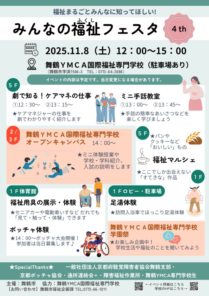 この催しは、当校を会場に「福祉まるごとみんなに知ってほしい!」をテーマにして舞鶴市が主催されているものです。