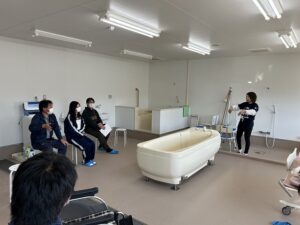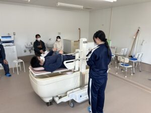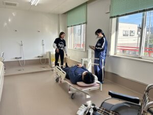 在校生が重度の患者さん役をし、挑戦してもらいました。